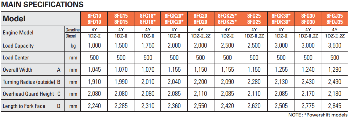 8FD10 – 8FD15 – 8FD20 – 8FD25 – 8FD30 – 8FDJ35 – 8FD35N – 8FD40N – 8FD45N – 8FD50N – 8FD60N – 8FD70N – 8FD80N