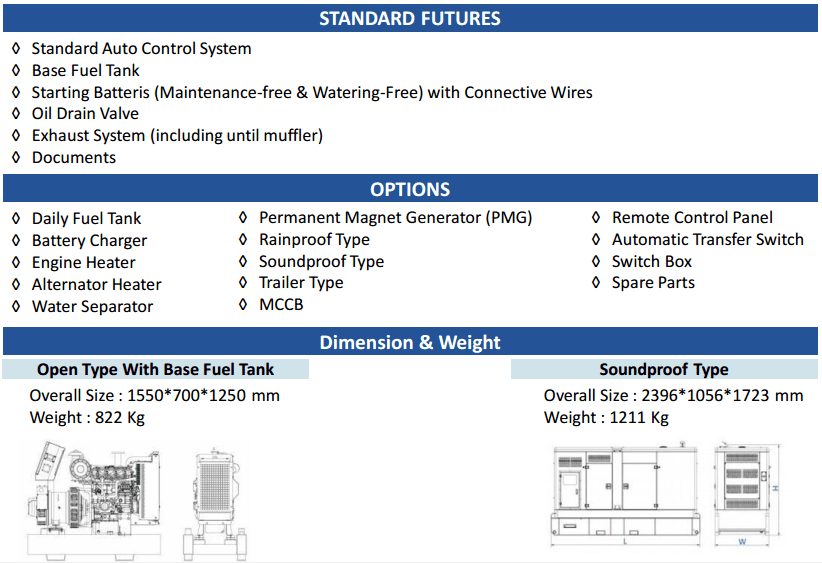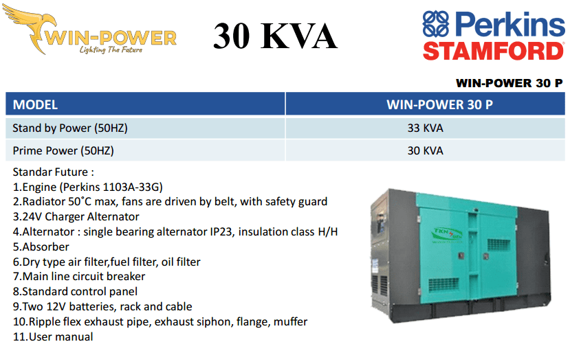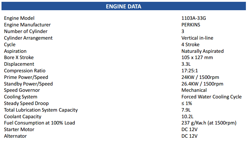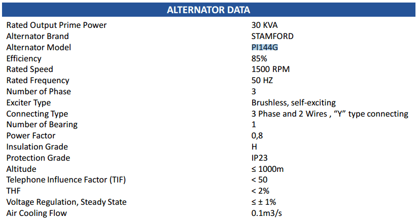 ENGINE MODEL 1103A-33G, ALTERNATOR MODEL PI144G, ENGINE MANUFACTUR BY PERKINS